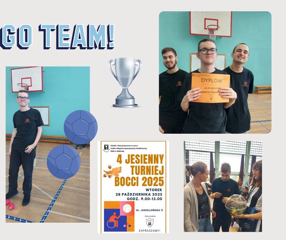 Nasze drużyny bocci biorą udział w turniejach i odnoszą na nich sukcesy. W turnieju organizowanym przez Zespół Niepublicznych Placówek Oświatowych PSONI koło w Gdańsku zdobyliśmy III miejsce! Z kolei do Gdyni, na duży turniej integracyjny, pojechaliśmy bardziej po doświadczenie. Nasza drużyna wygrała mecz i zdobyła cenne doświadczenia udziału w dużej imprezie sportowej. Serdecznie gratulujemy i trzymamy kciuki za dalsze sukcesy!!!